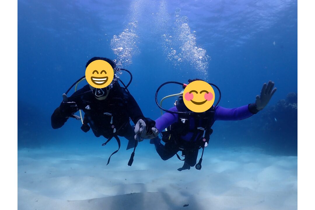 2人ともダイビングは初体験なので、少しでも不安をなくすために少人数にしました。