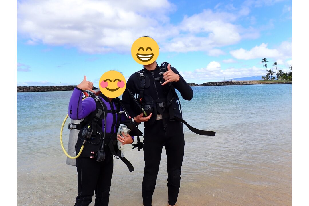 今回は新婚旅行でハワイへ行った際にダイビングを体験しました。2人ともダイビングのライセンスは持っていないので、インストラクターがしっかりと付いていてくれるところを選びました。