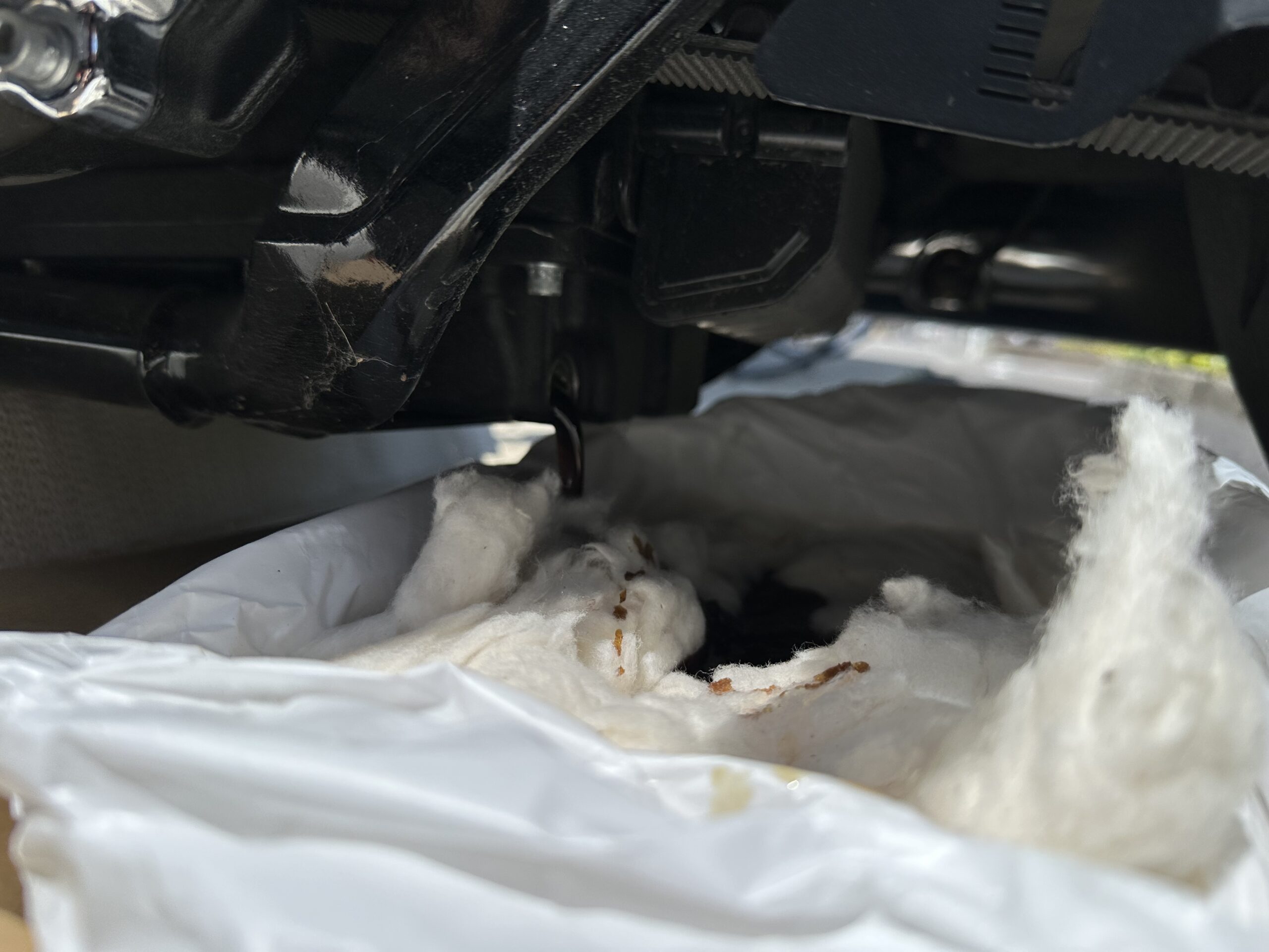 ドレインボルトから古いオイルを抜くので、ドレインボルトのところに廃油パックをセットしましょう。