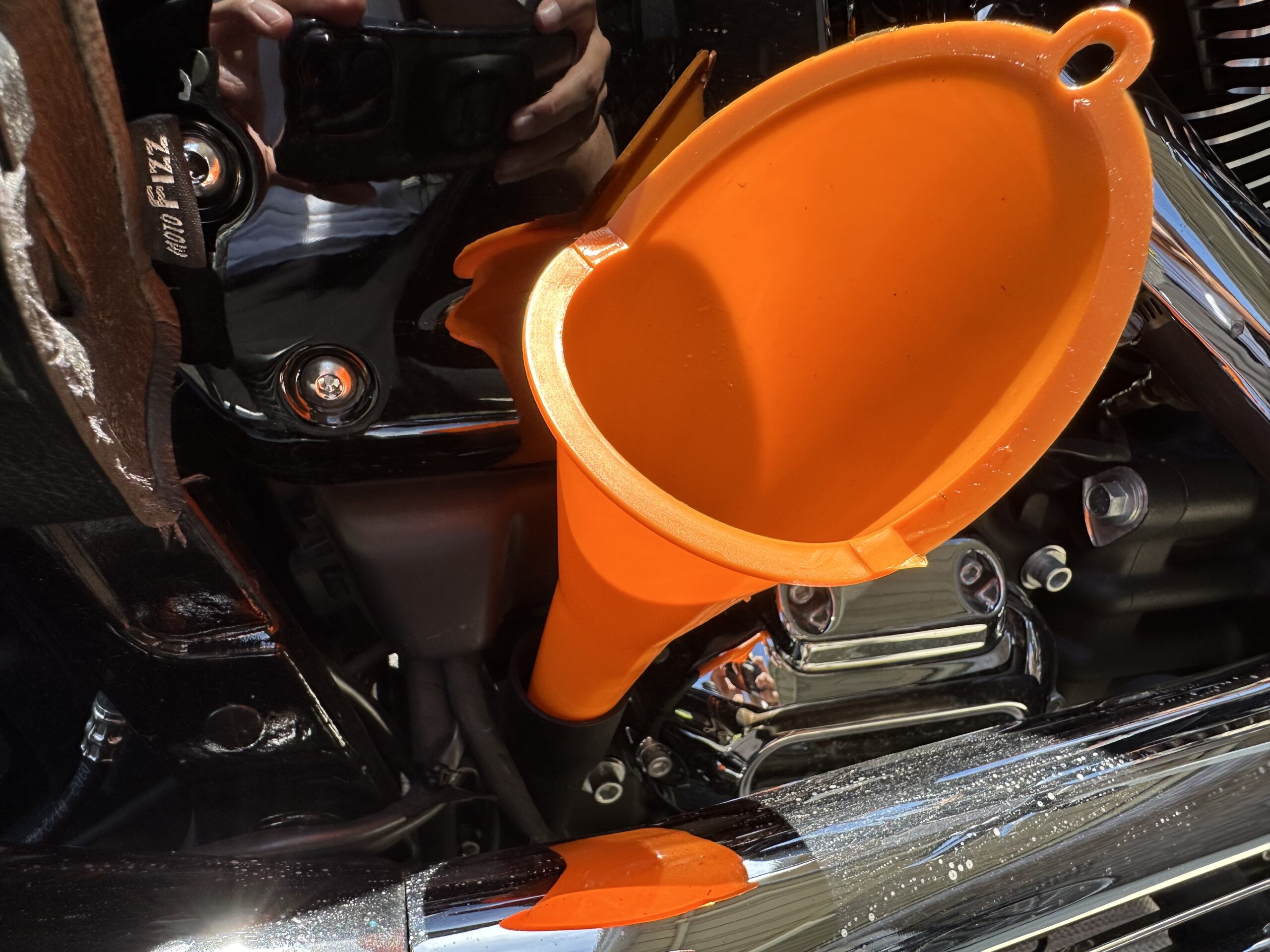 オイルを注入口からそそぐ際にオイルファンネルがあると零れにくいですね。オイルが零れると車体にかかり掃除する必要がでてくるのでめんどくさいです(笑)