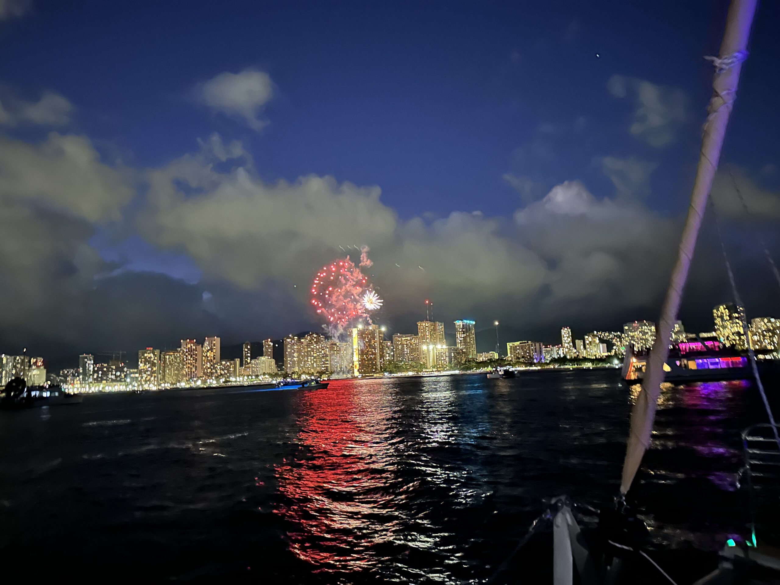 4日目は金曜日だったのでビーチで花火が挙がります。夕方からは花火を海上でみるために、クルージングを体験しました。