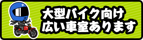 ハーレーダビッドソンなどの大きいバイクの場合は、スペースが広く必要な場合もあるので広い駐車場がいいかもしれません。