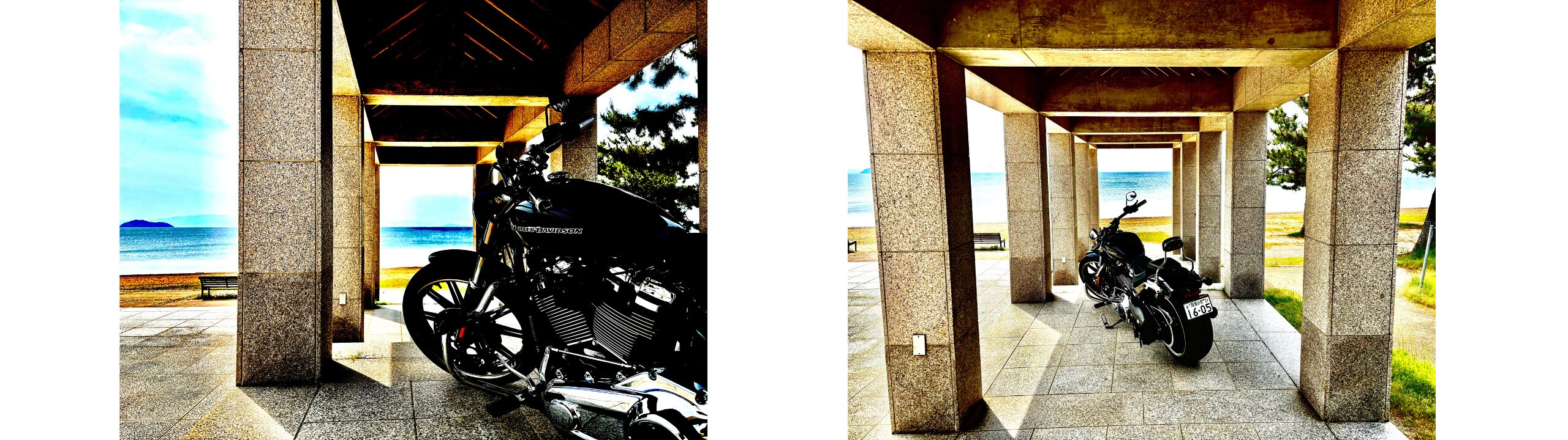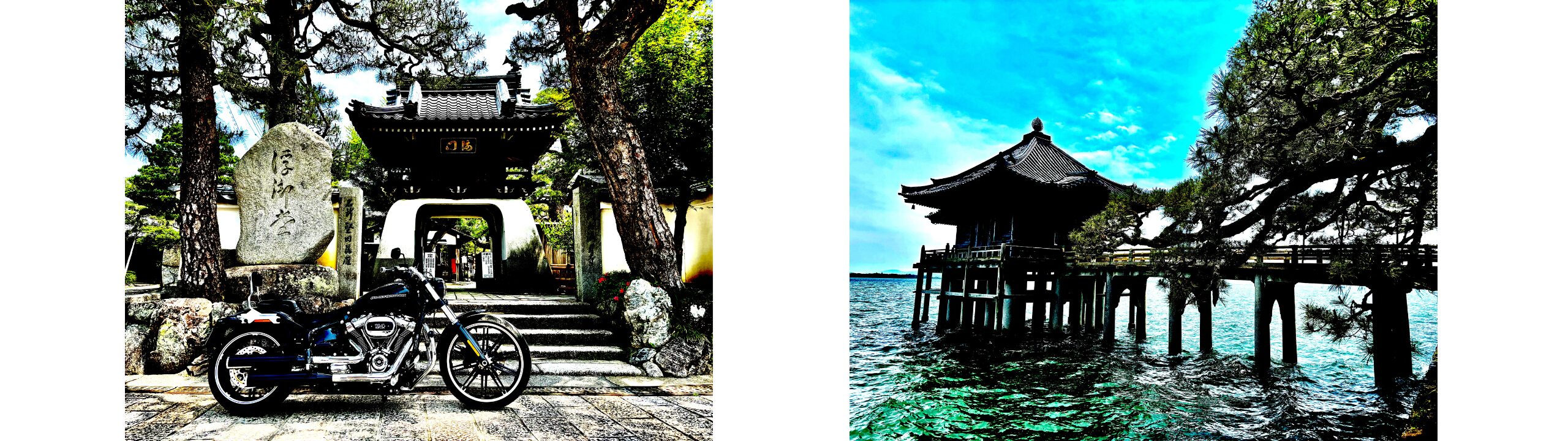 浮御堂とバイクは一緒には撮れませんが、松の木の迫力とバイクと撮るとカッコいいですよ!