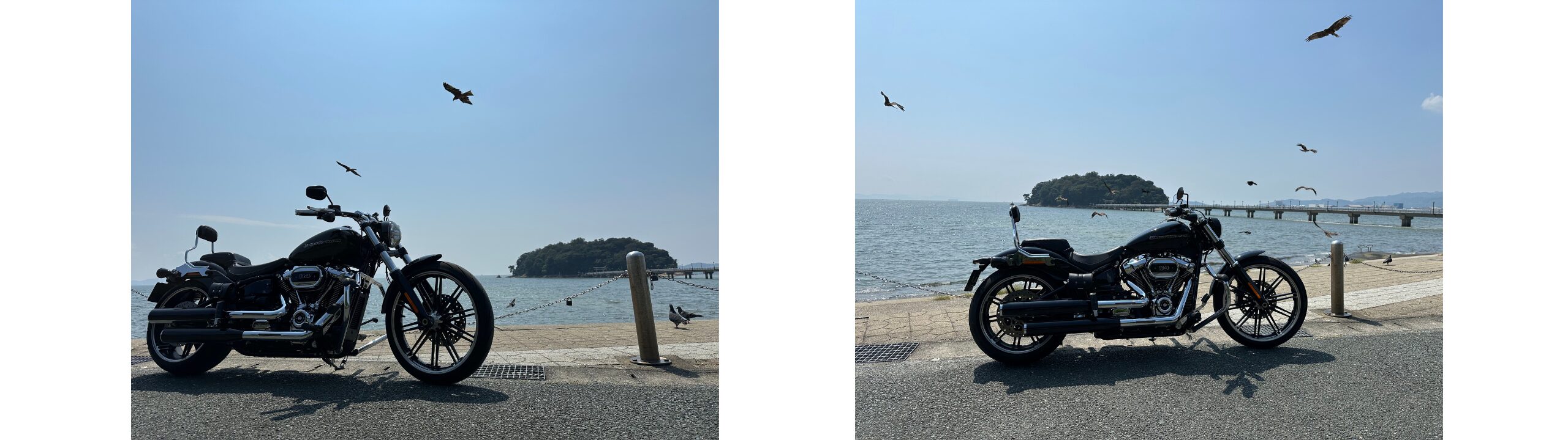 さすがにバイクでは竹島ではいけませんが、写真のような感じで竹島と愛車のツーショットが撮れます。
